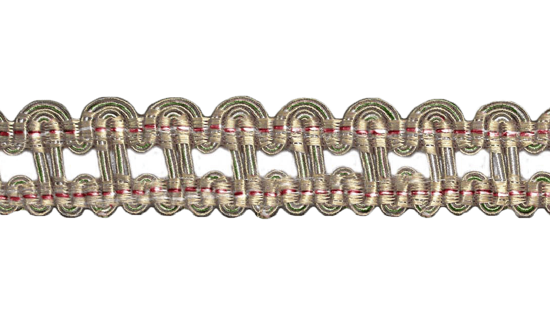 A luxurious trimming collection featuring a repetitive pattern of design using beads. Looks like elegant women’s accessories which is very eye-catching and attractive.